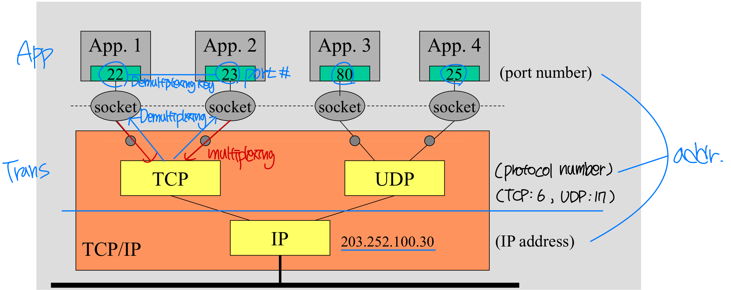 호스트 장치는 고유한 32-bit IP address(IPv4)를 가진다. 그러나 IP 주소만으로는 특정 프로세스를 식별할 수 없다. 하나의 호스트에서 여러 프로세스가 동시에 실행될 수 있기 때문이다.