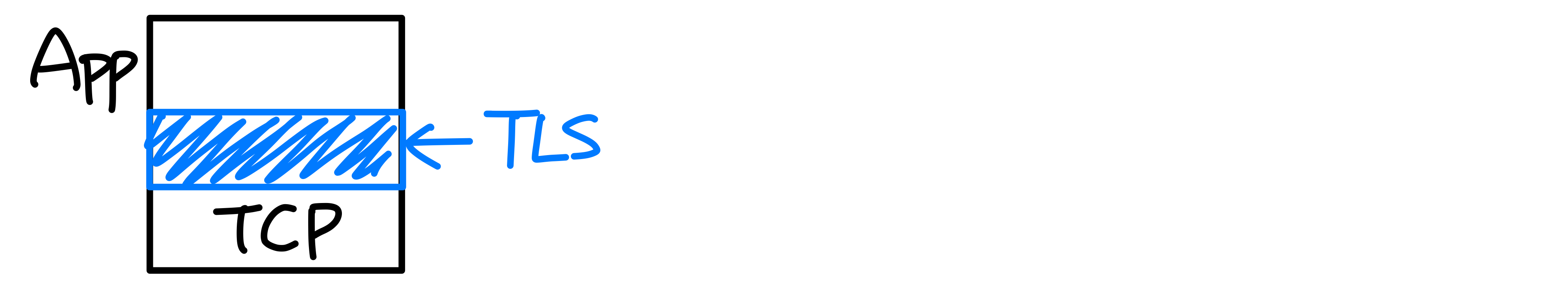 - TLS는 애플리케이션 계층에서 동작하며, 앱이 TLS 라이브러리를 사용하고 이것이 다시 TCP를 이용한다.