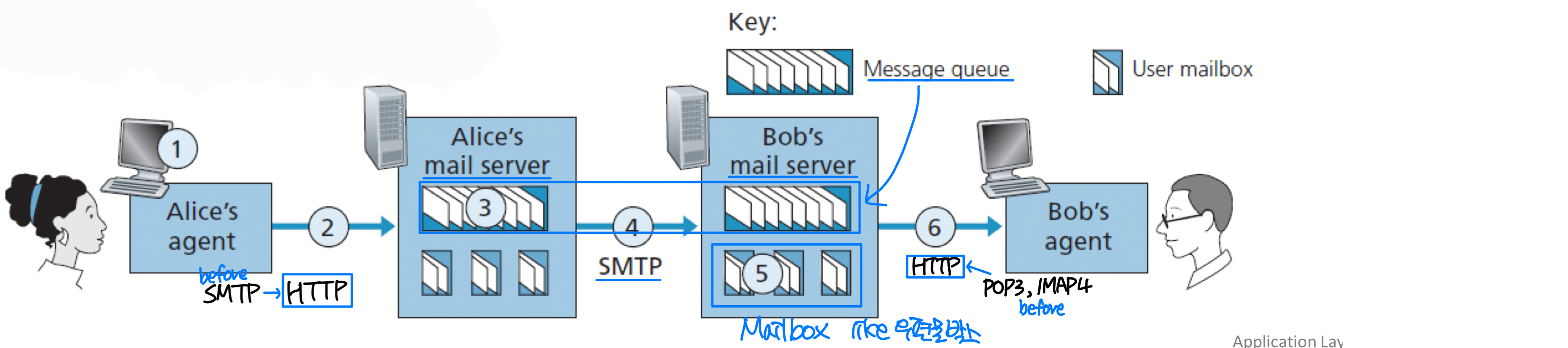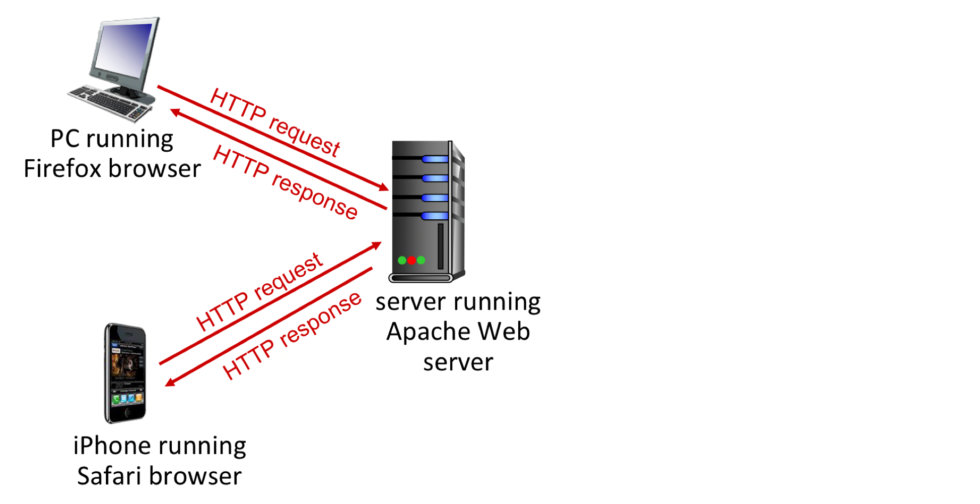 애플리케이션 계층 프로토콜은 네트워크 애플리케이션의 한 요소일 뿐이다. 예를 들어, 웹 애플리케이션은 문서 포맷 표준(HTML), 웹 브라우저, 웹 서버, 그리고 HTTP를 포함하는 여러 요소로 구성된다.