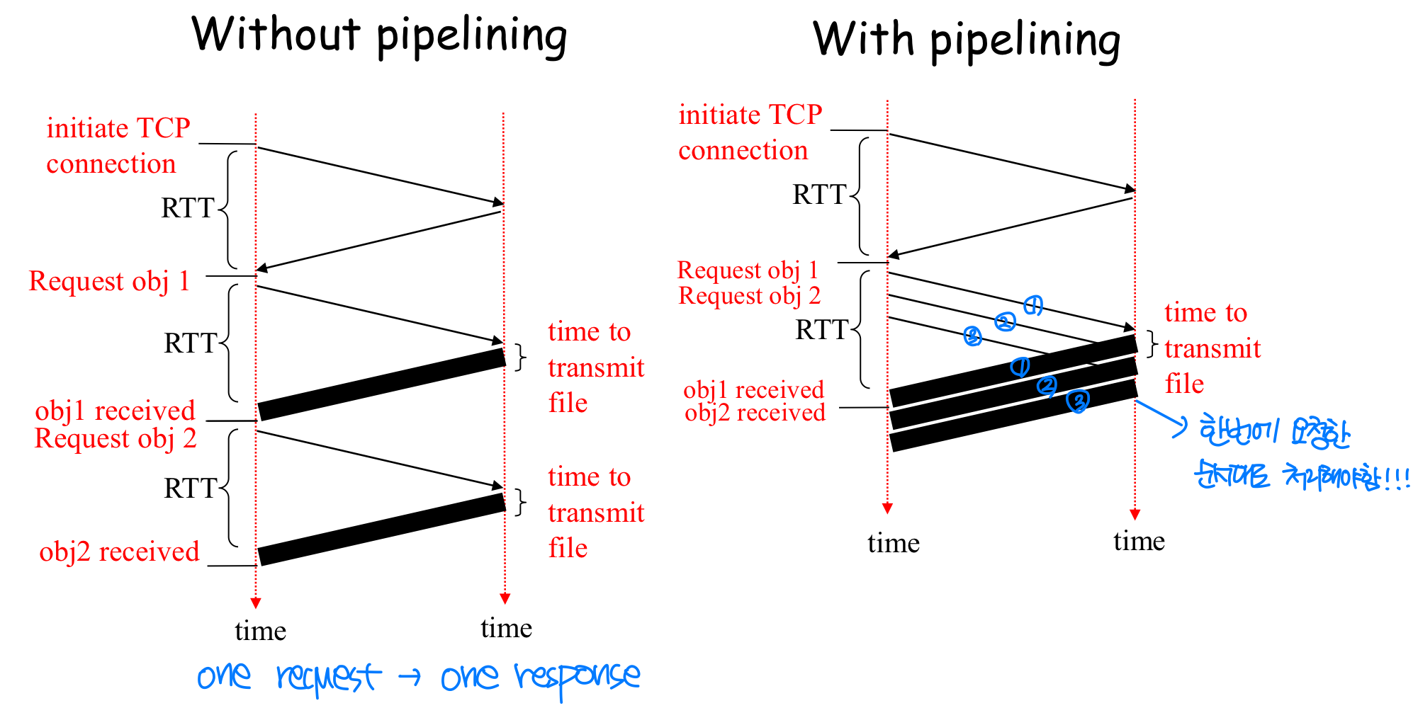 **웹 페이지(web page)**는 여러 **객체(object)**로 구성된다. 객체는 HTML 파일, JPEG 이미지, Java applet, 오디오 파일 등이 될 수 있으며, 단일 URL로 지정할 수 있는 하나의 파일이다.