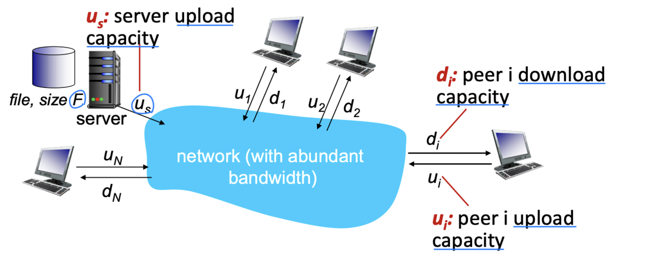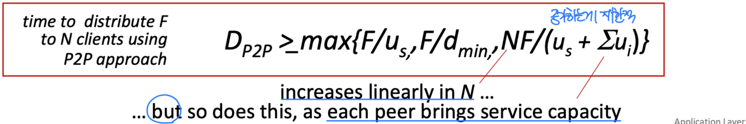 핵심 특징은 self scalability이다. 새로운 peer가 참여하면 서비스 수요도 늘어나지만, 동시에 서비스 용량도 함께 증가한다. 데이터 센터 등이 필요 없어 비용 효율적이기도 하다. 다만 peer들이 간헐적으로 연결되고 IP 주소가 바뀔 수 있어(NAT 문제: public IP와 private IP 변환), 관리가 복잡하다.