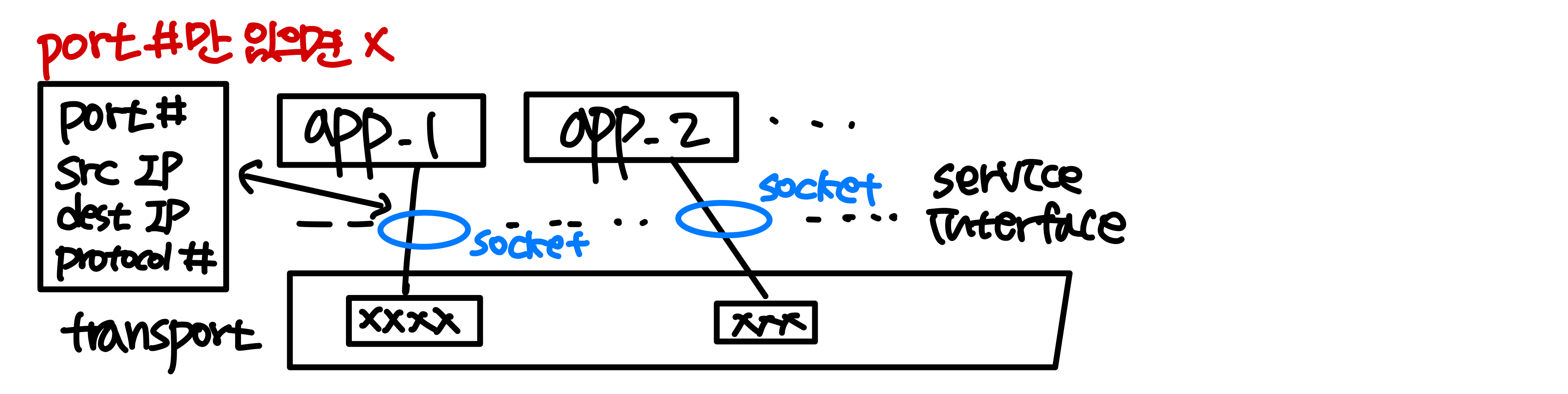 - TCP: 4-tuple (출발지/목적지 IP + 포트)로 역다중화