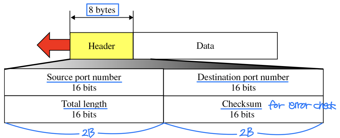 - best-effort IP에 최소한의 기능만 추가한 No-frills 프로토콜