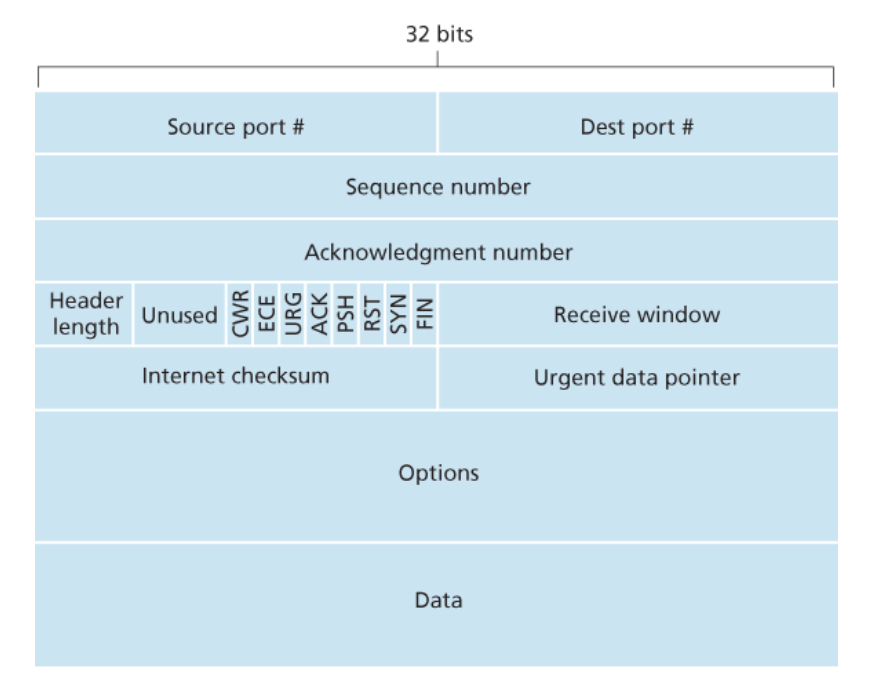 - 각 세그먼트에는 출발지 포트 번호와 목적지 포트 번호가 포함된다.