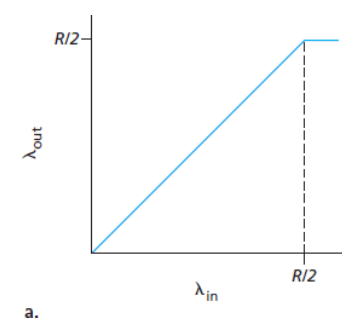 실제 처리율은 원점에서부터 발산하면서 45º 각도의 화살표(동등한 대역폭 공유)를 따라야 한다. - 이상적으로는 두 처리율의 합이 R과 같아야 한다.