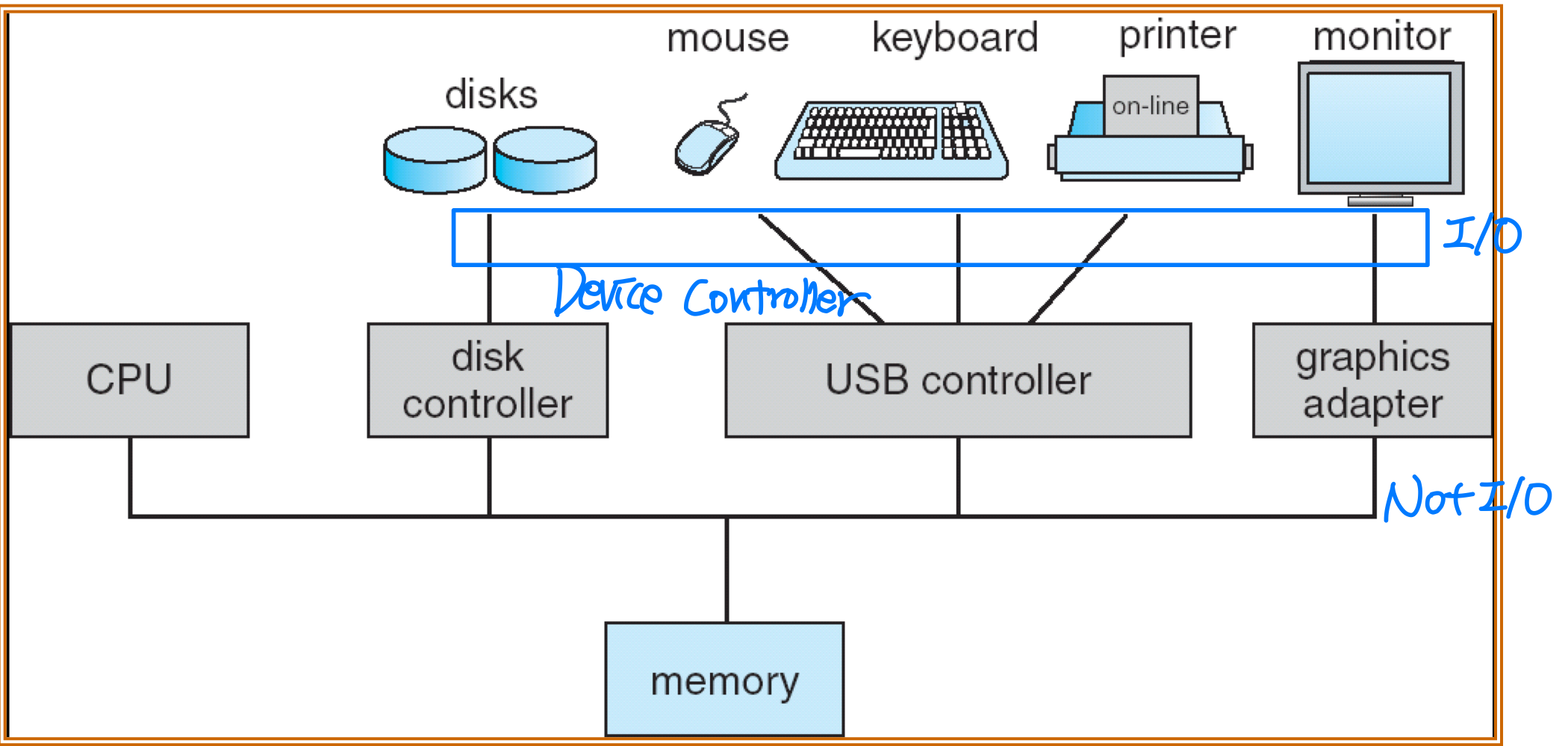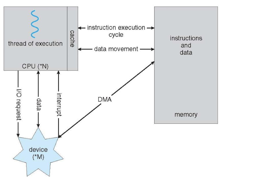 공통 버스(Common Bus) 는 컴퓨터 구성 요소 간에 데이터를 전송하는 서브시스템이다. CPU, 메모리, 장치 컨트롤러가 공통 버스로 연결되며, I/O 장치와 CPU는 동시에(concurrently) 실행될 수 있다.