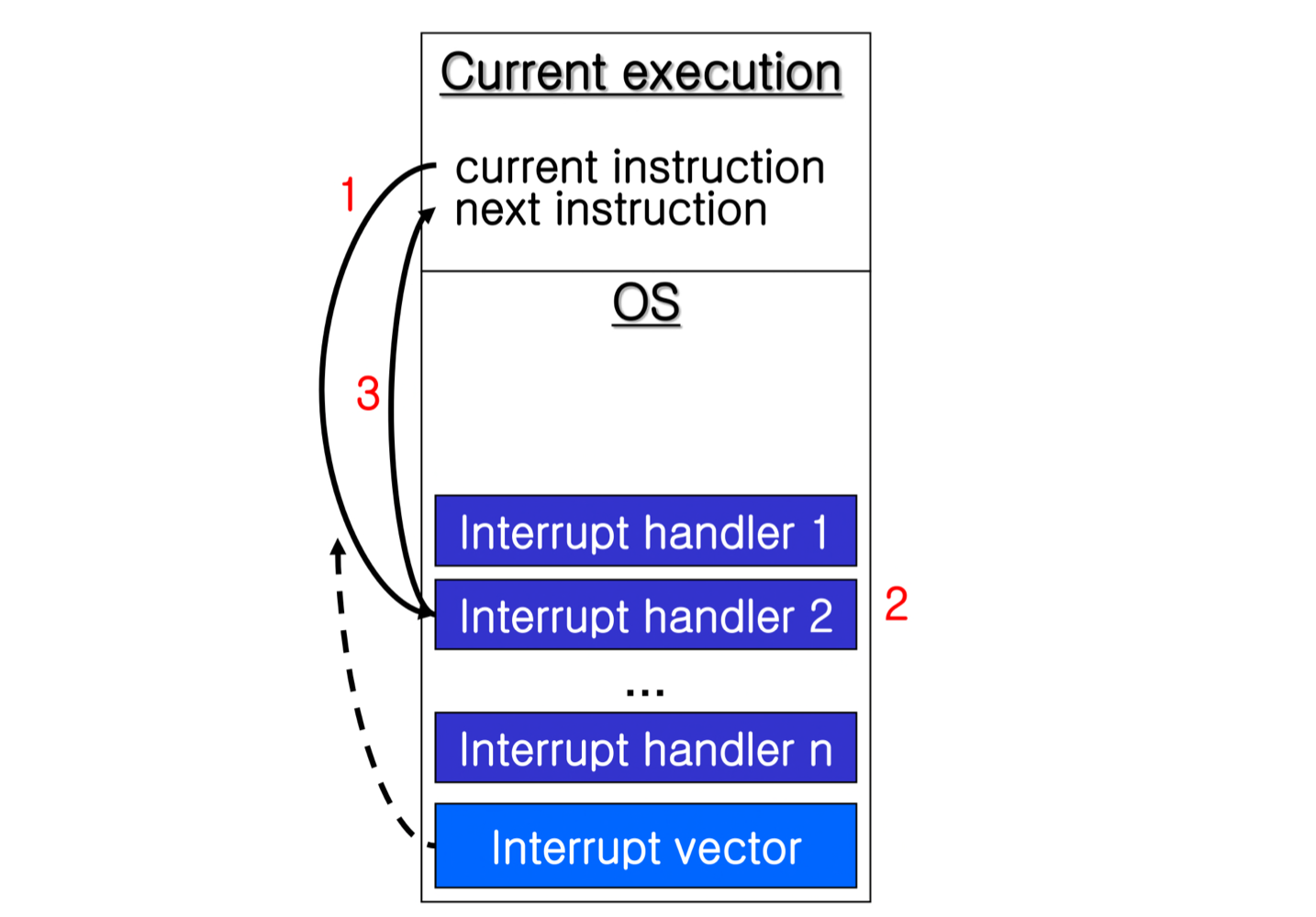- 인터럽트 벡터(Interrupt Vector): 인터럽트 핸들러들의 주소가 저장된 테이블