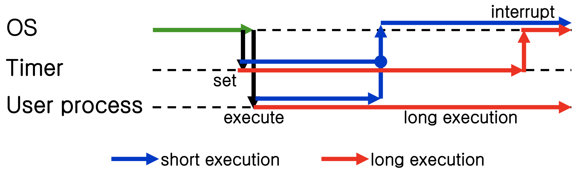 - 지나치게 긴 실행에 대한 대응: 타이머 인터럽트(Timer Interrupt)