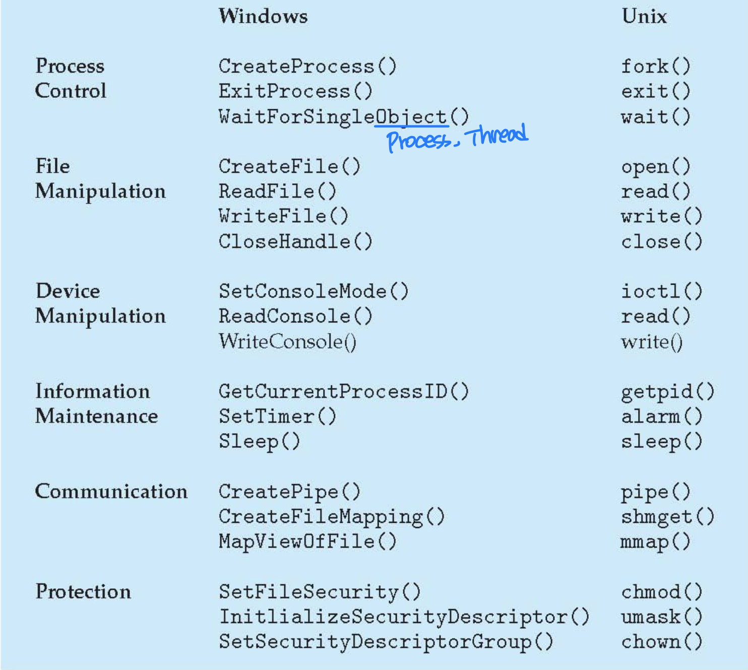- 예: POSIX API는 UNIX 시스템 콜과 거의 동일