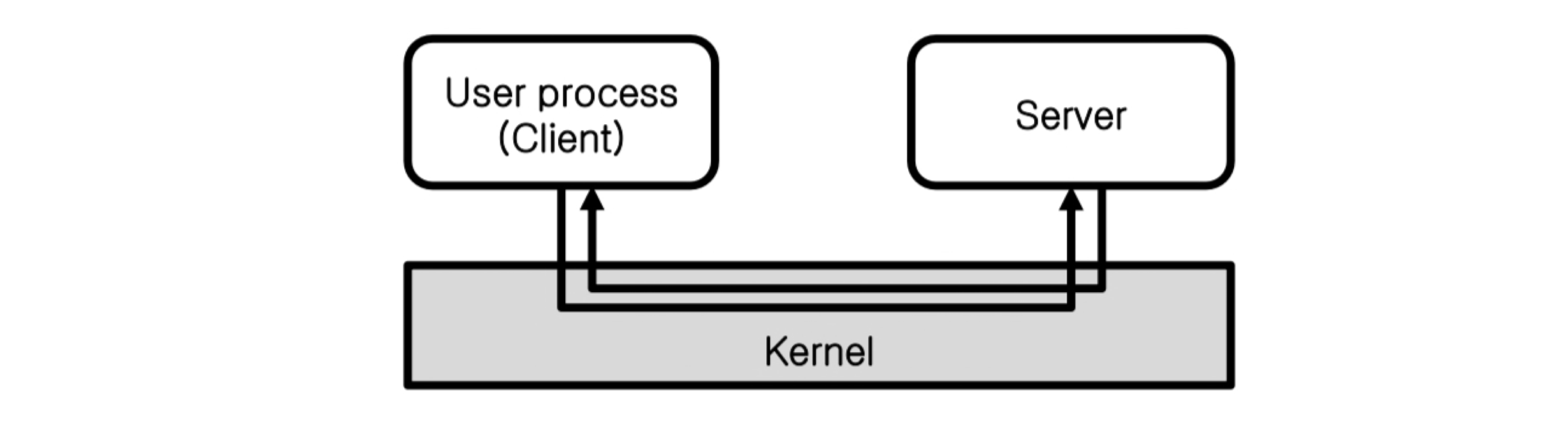 시스템 콜은 메시지 패싱(Message Passing) 을 통해 제공된다. 클라이언트와 서비스는 사용자 공간에서 실행되고, 커널은 클라이언트와 서버 사이의 메시지 전달 기능만 제공한다.