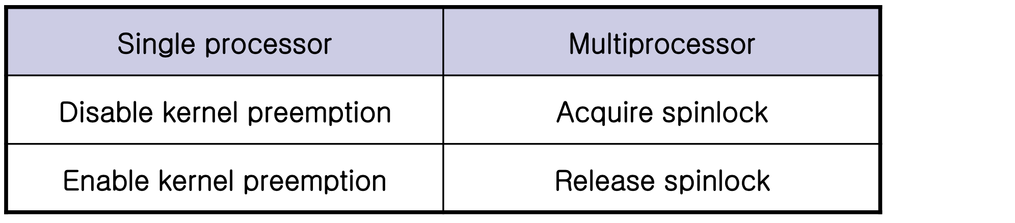 - 커널은 스핀락을 보유한 스레드가 선점되지 않도록 보장한다