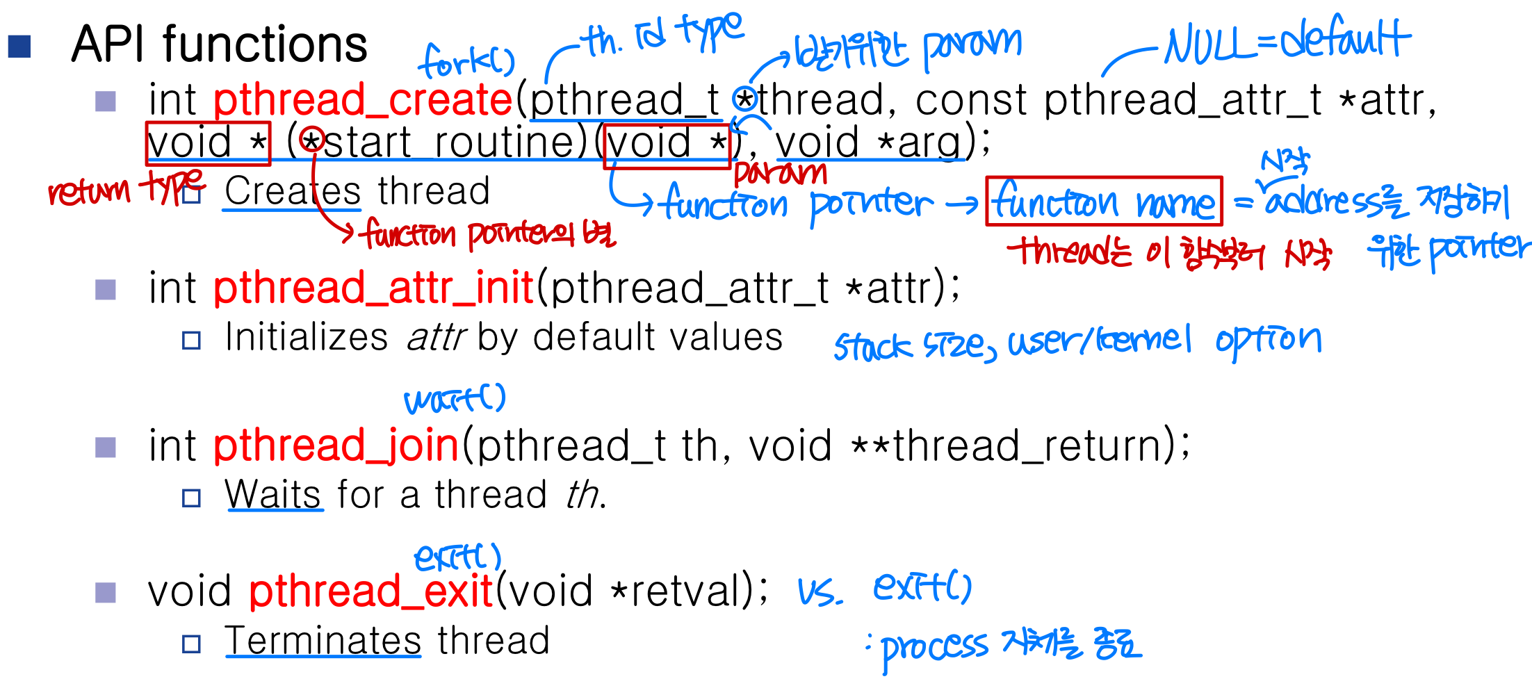 - POSIX Pthreads: 가장 널리 사용되는 스레드 표준