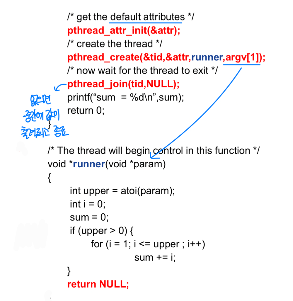 참고로 thread_demo2.c 예제에서는 main의 avg 배열(지역 변수)을 자식 스레드가 주소로 접근하는 방식을 사용한다. 이는 join으로 main이 자식 스레드를 기다리기 때문에 가능하다.