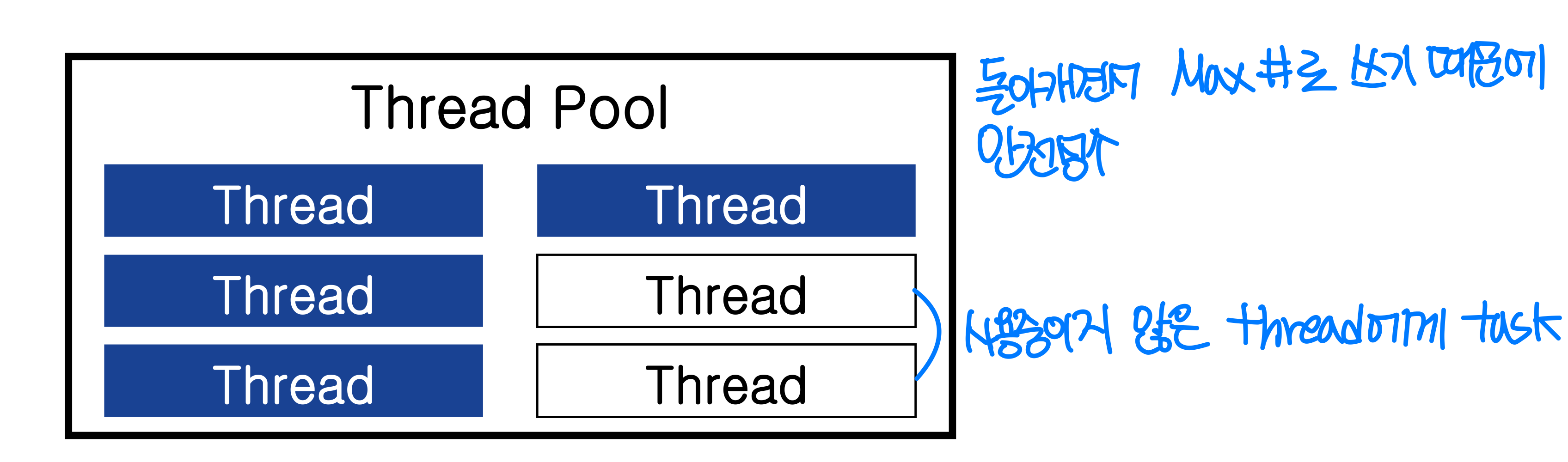 - 스레드 수를 풀의 크기로 제한할 수 있어 자원 관리가 용이하다