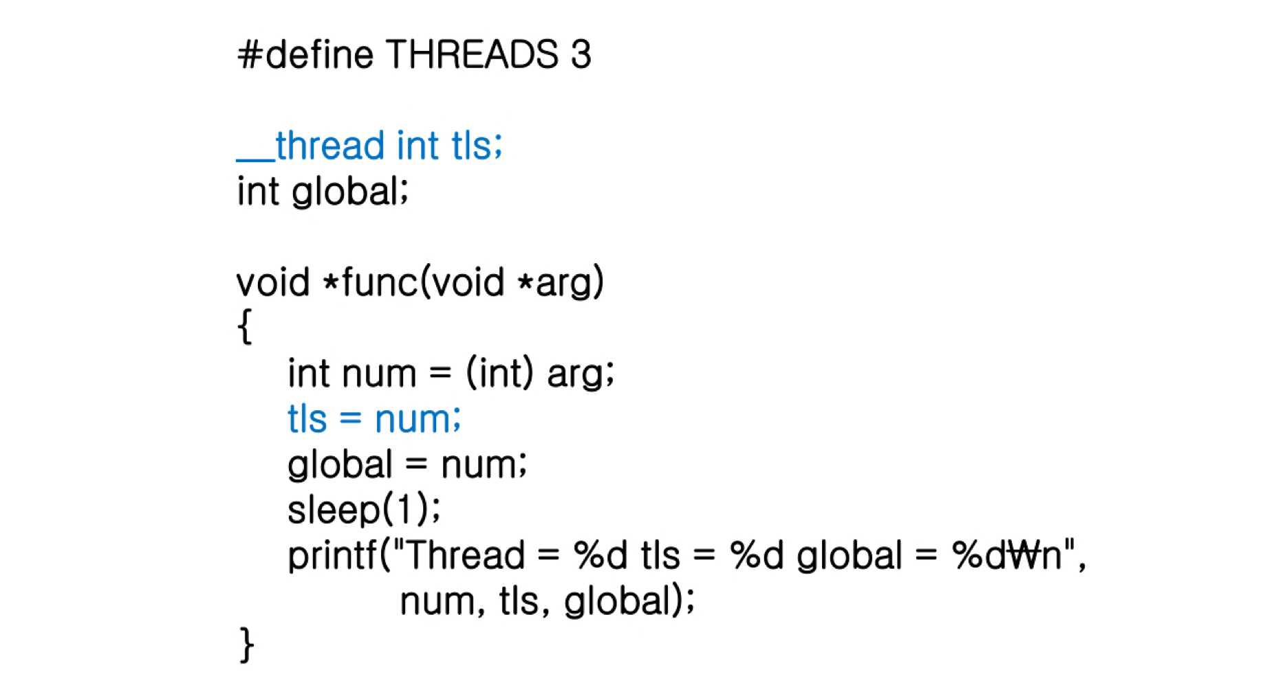 위와 같이 선언하면 각 스레드가 자신만의 tls 변수를 갖게 된다.