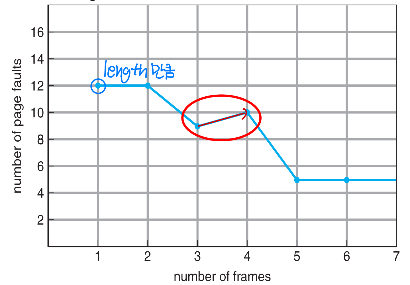 프레임 수를 늘려도 페이지 폴트율이 증가할 수 있다는 것이 Belady의 모순의 핵심이다.