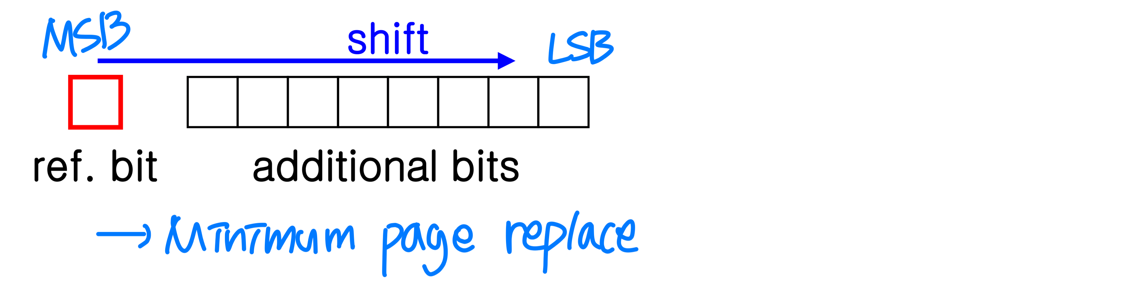 이때 수정 비트(Modify Bit, Dirty Bit) 를 활용하면 쓰기 오버헤드를 줄일 수 있다. 수정 비트가 0이면 해당 프레임은 변경되지 않았으므로 디스크에 다시 쓸 필요가 없다.