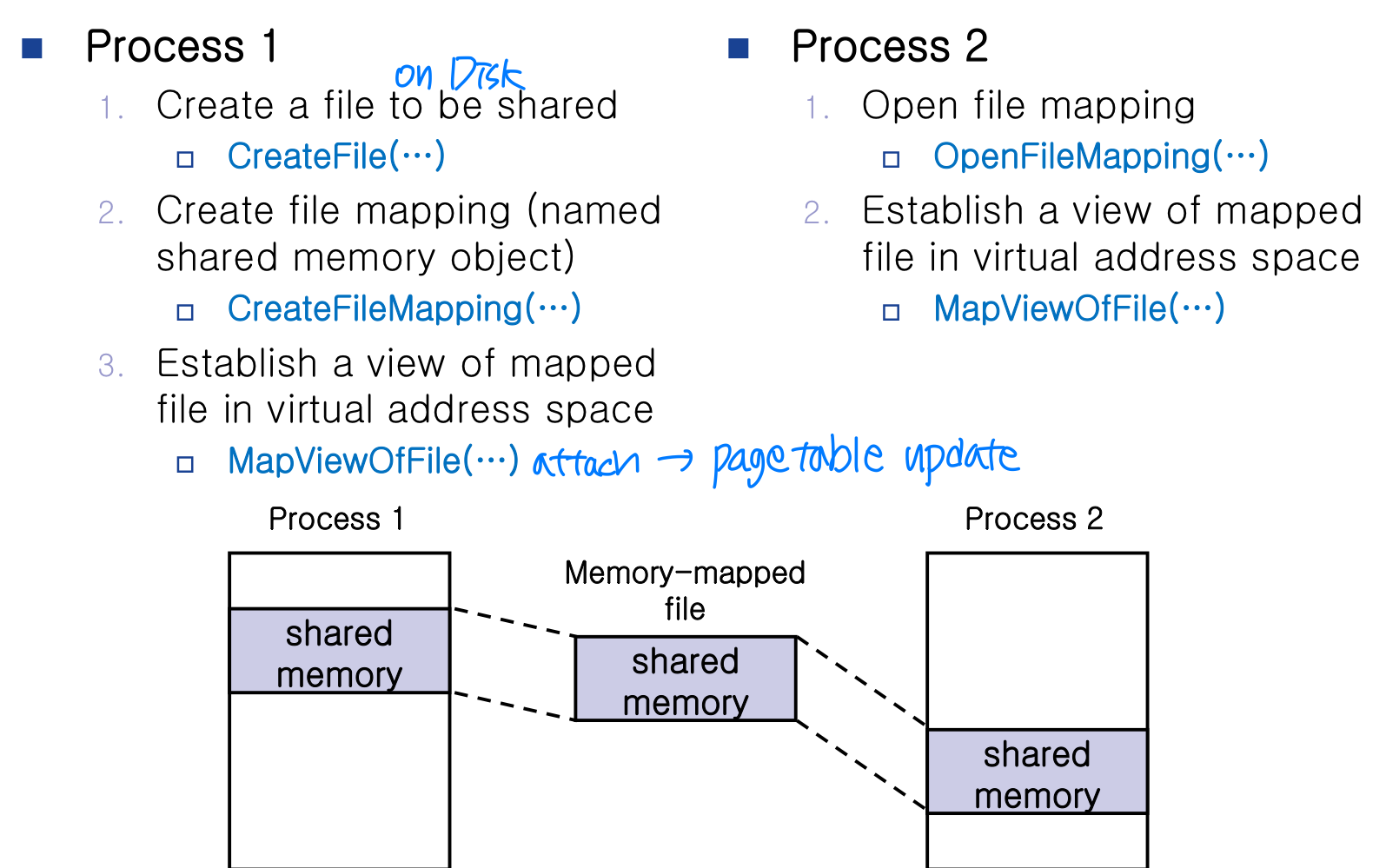 - 여러 프로세스가 메모리 매핑 파일을 통해 데이터를 공유할 수도 있다