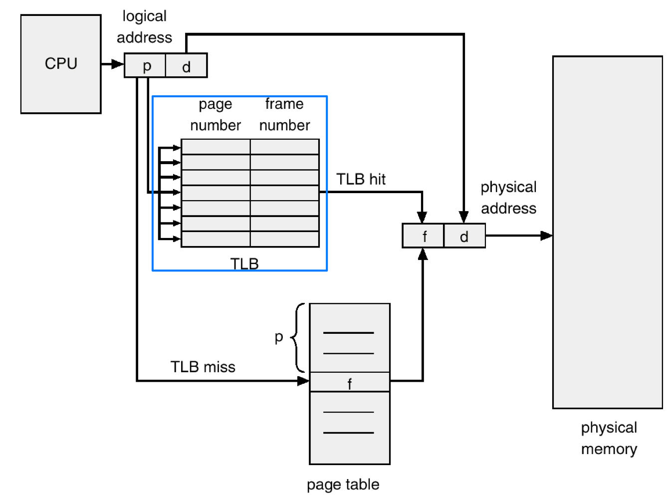 TLB 적중률(TLB Hit Ratio) 을 높이려면 TLB 크기를 늘려야 하지만, 연관 메모리(Associative Memory)는 비싸고 전력 소모가 크다.