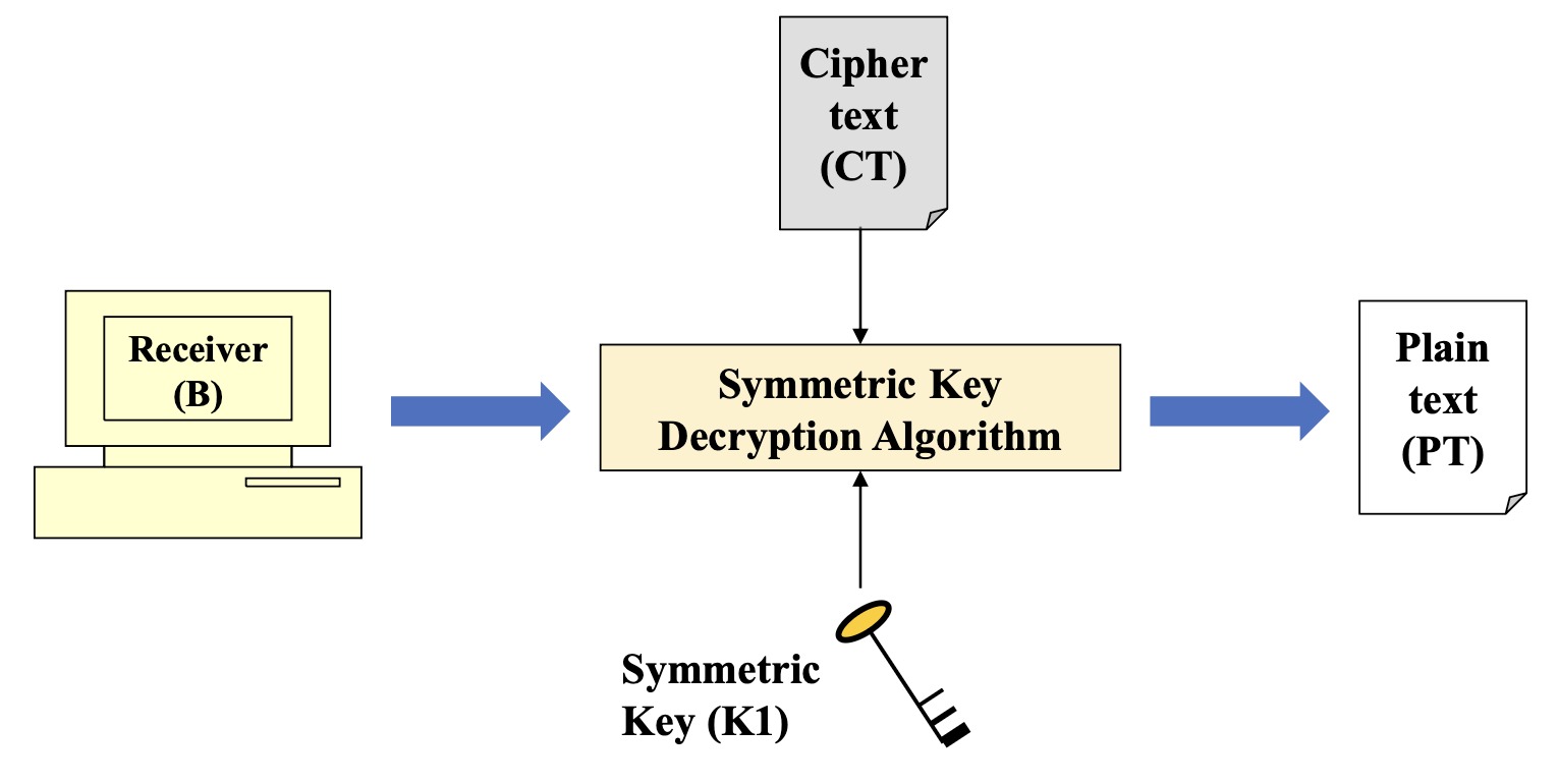 - 복호화된 대칭키로 원본 메시지 복호화
