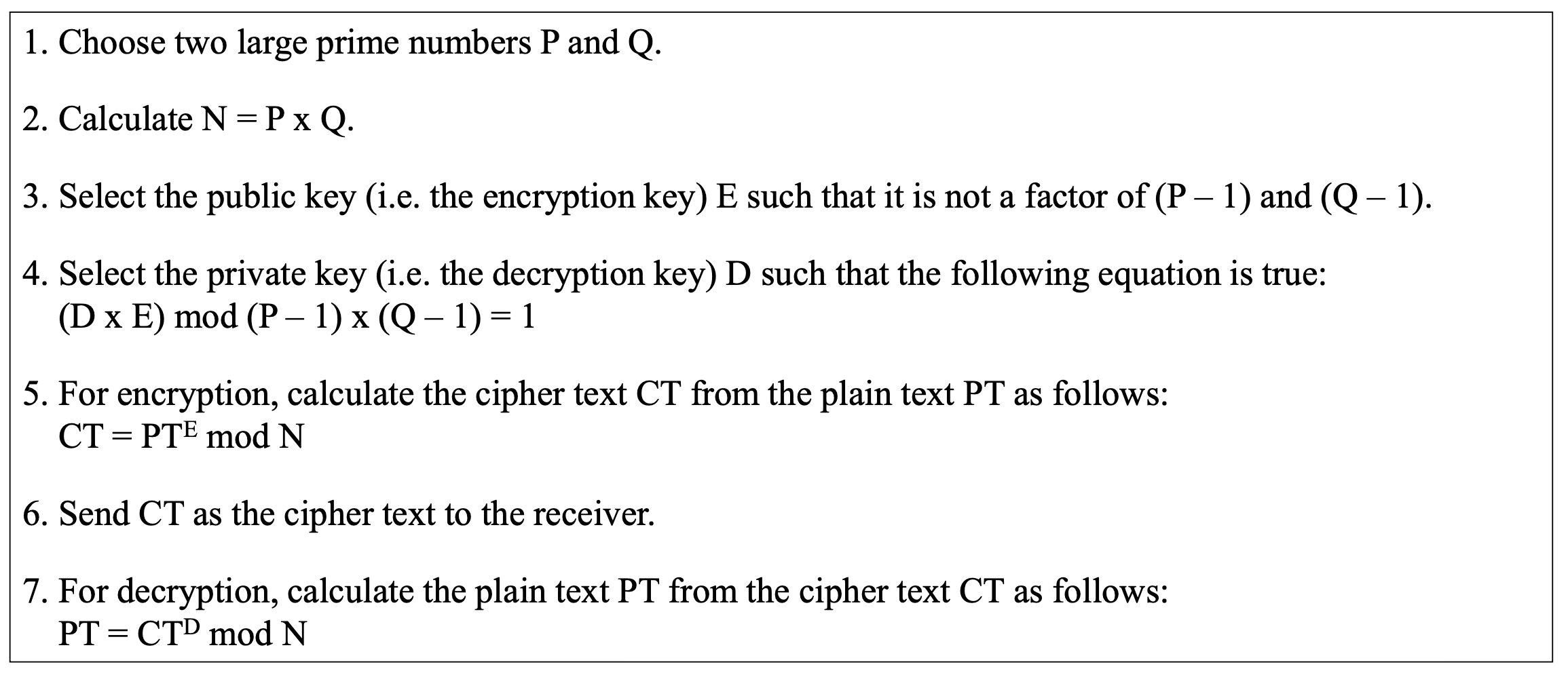 (D × E) mod (P - 1) × (Q - 1) = 1