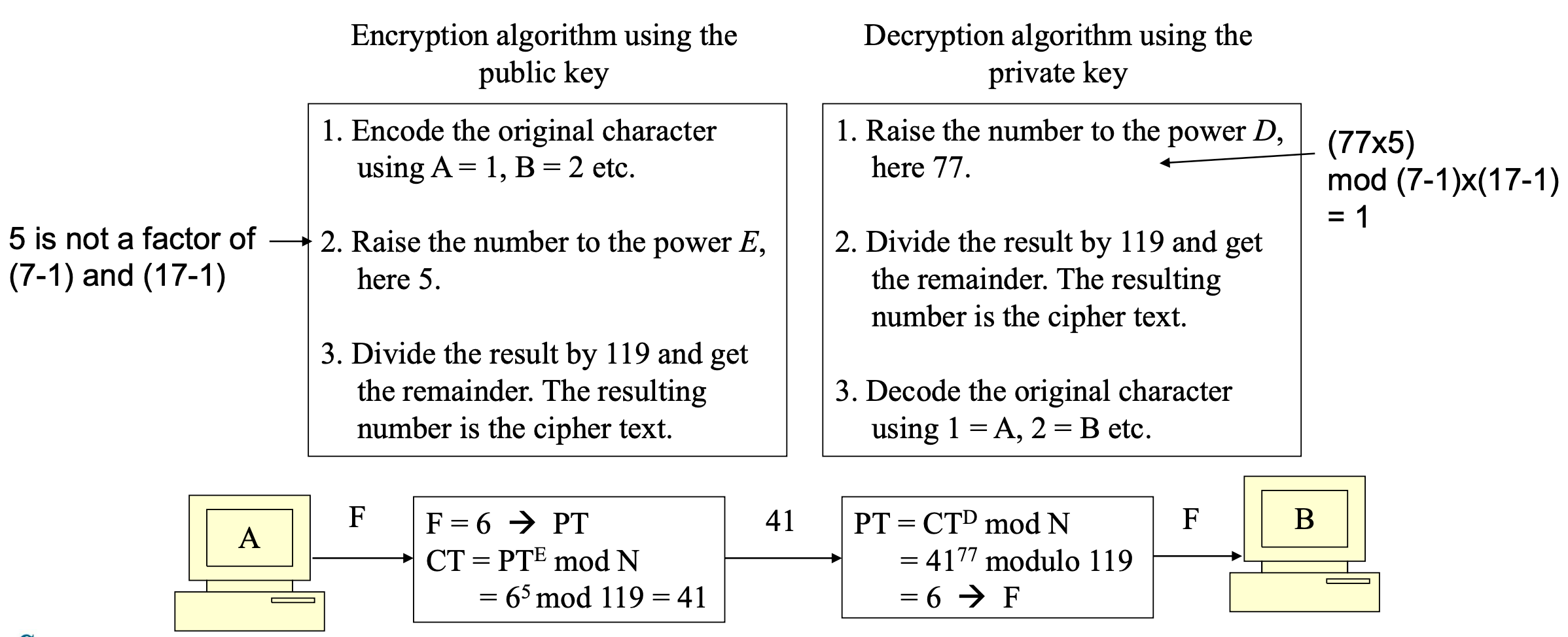 간단한 예시로, P=7, Q=17이면 N=PxQ=119가 된다.