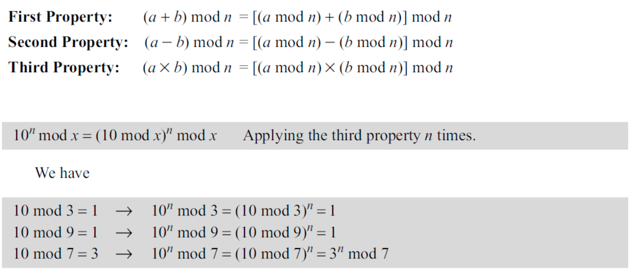 합동의 성질은 다음과 같다.