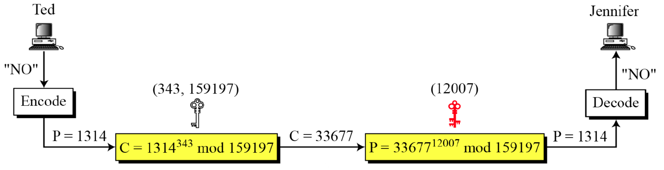 Ted가 Jennifer에게 "NO"라는 메시지를 보내려고 한다. (A=0일 때 N=13, O=14)