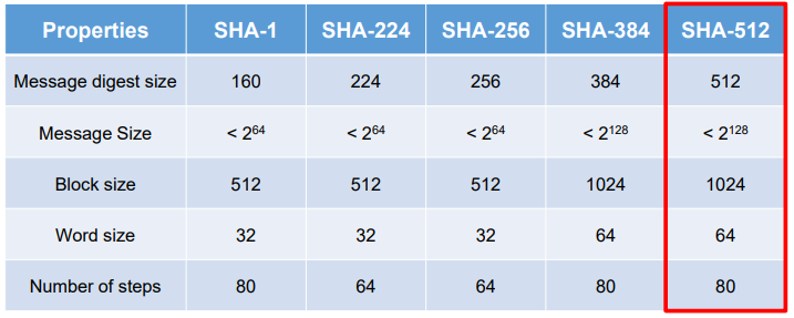 - MD5, SHA-1, RIPEMD-160, Whirlpool 등 어떤 해시 함수든 사용 가능