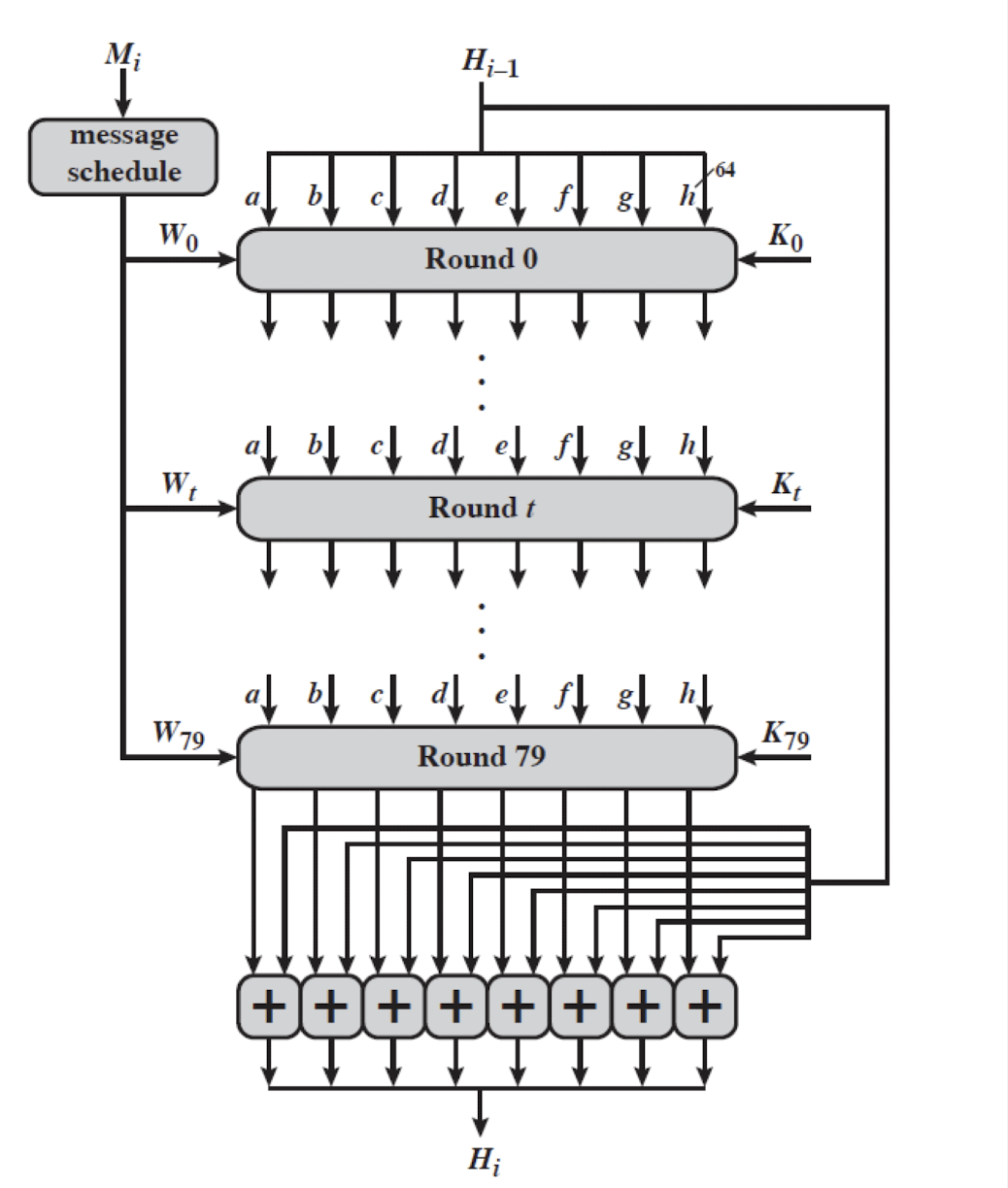 메시지의 무결성을 보존하기 위해 메시지를 **암호학적 해시 함수(Cryptographic Hash Function)**에 통과시킨다. 이 함수는 지문처럼 사용할 수 있는 메시지의 압축된 이미지를 생성한다.