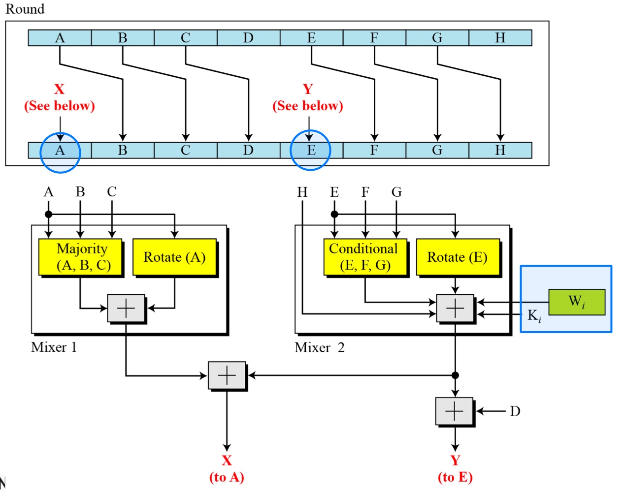 HMAC_K(M) = Hash[(K+ XOR opad) || Hash[(K+ XOR ipad) || M)]