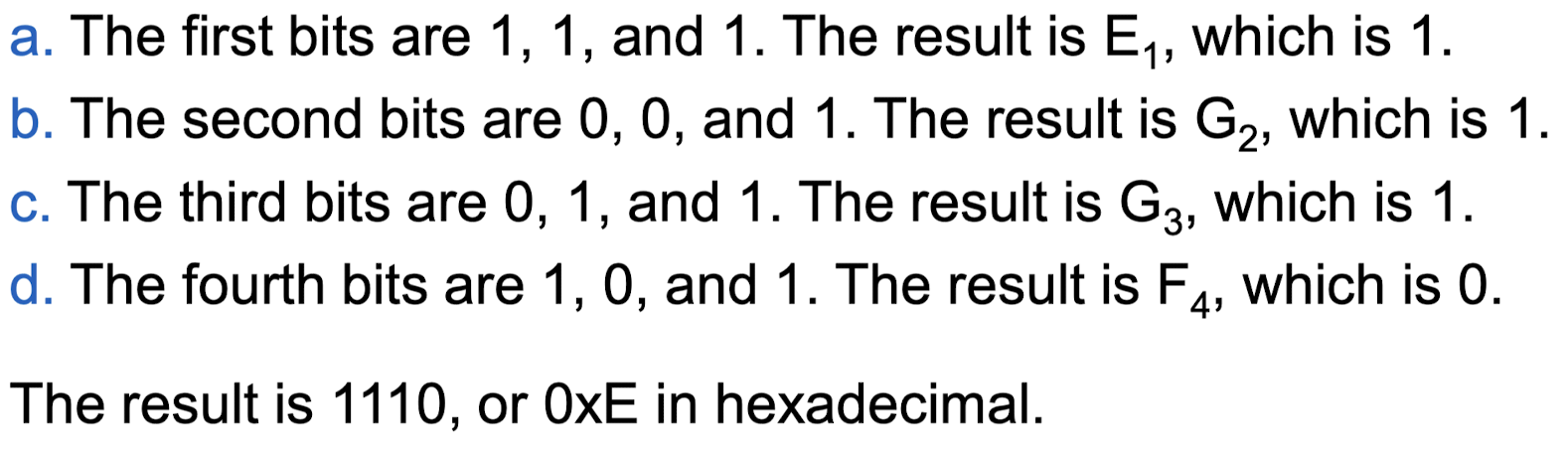 풀이: 이진수로 0111, 1010, 1110이다.