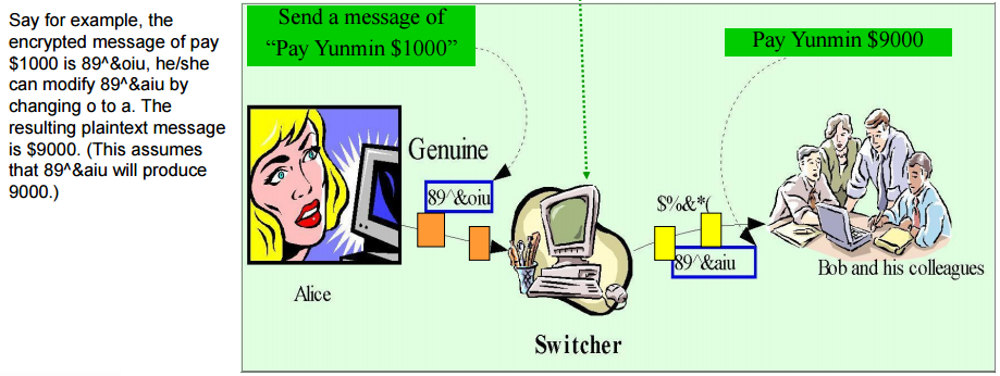공격자가 메시지의 내용을 알고 있다면, 암호화된 메시지를 수정할 수 있다.