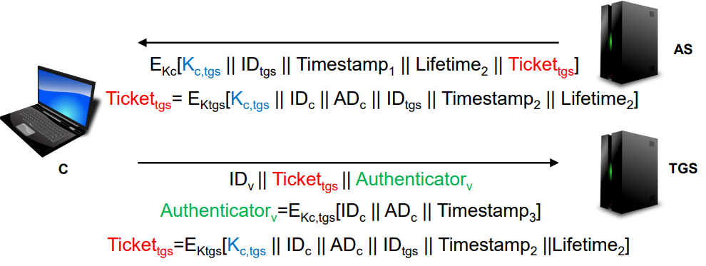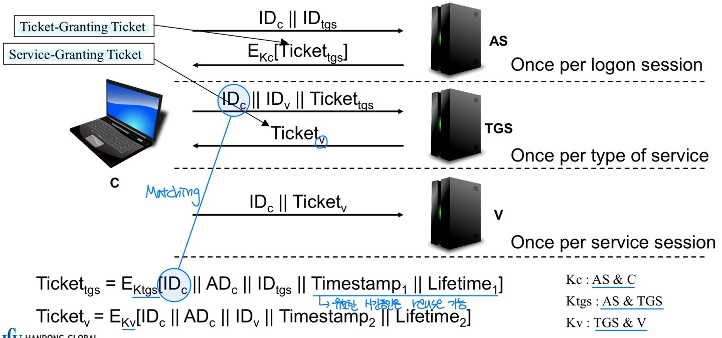 - 새 서비스 접근이 필요할 때마다 클라이언트가 Ticket를 TGS에 제시 (자신 인증용)