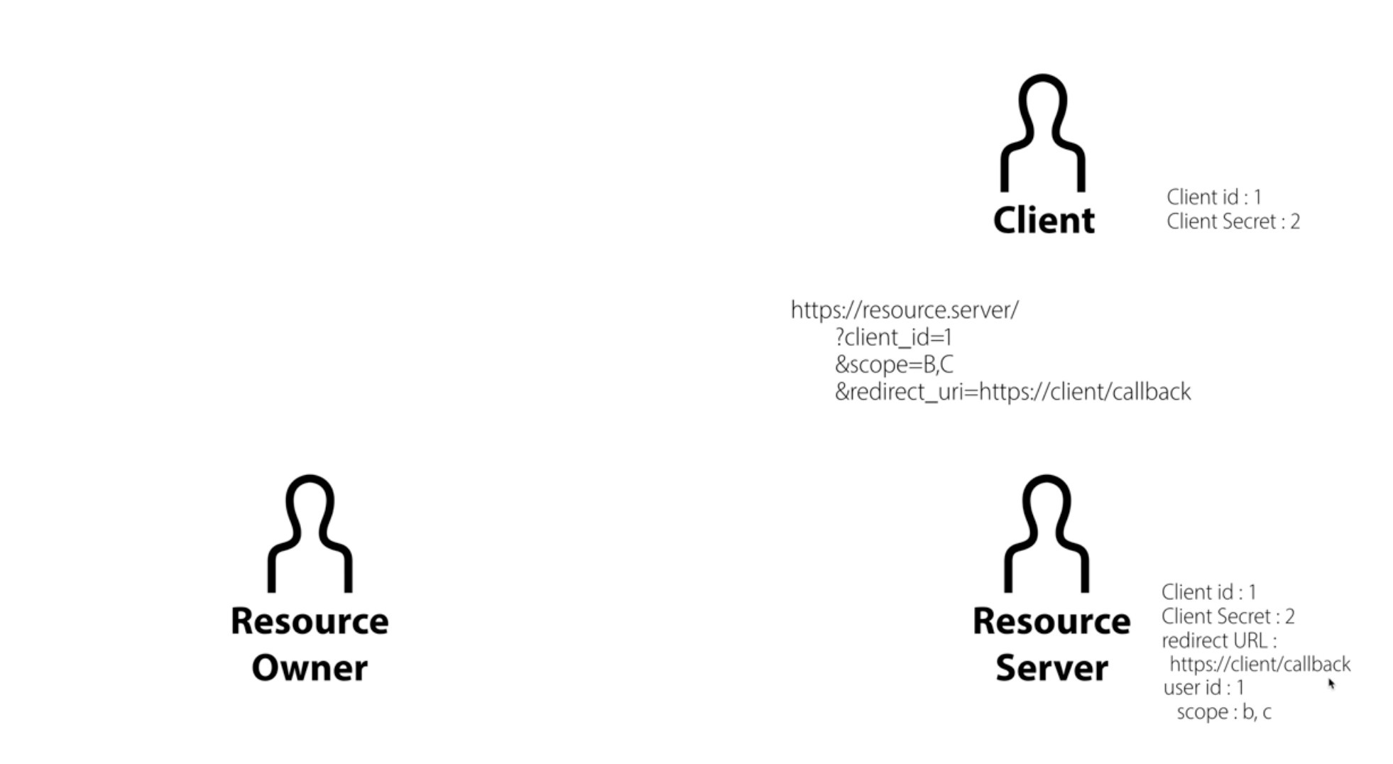 | Roles | Resource Owner, Client, Resource Server (+ Authorization Server) |