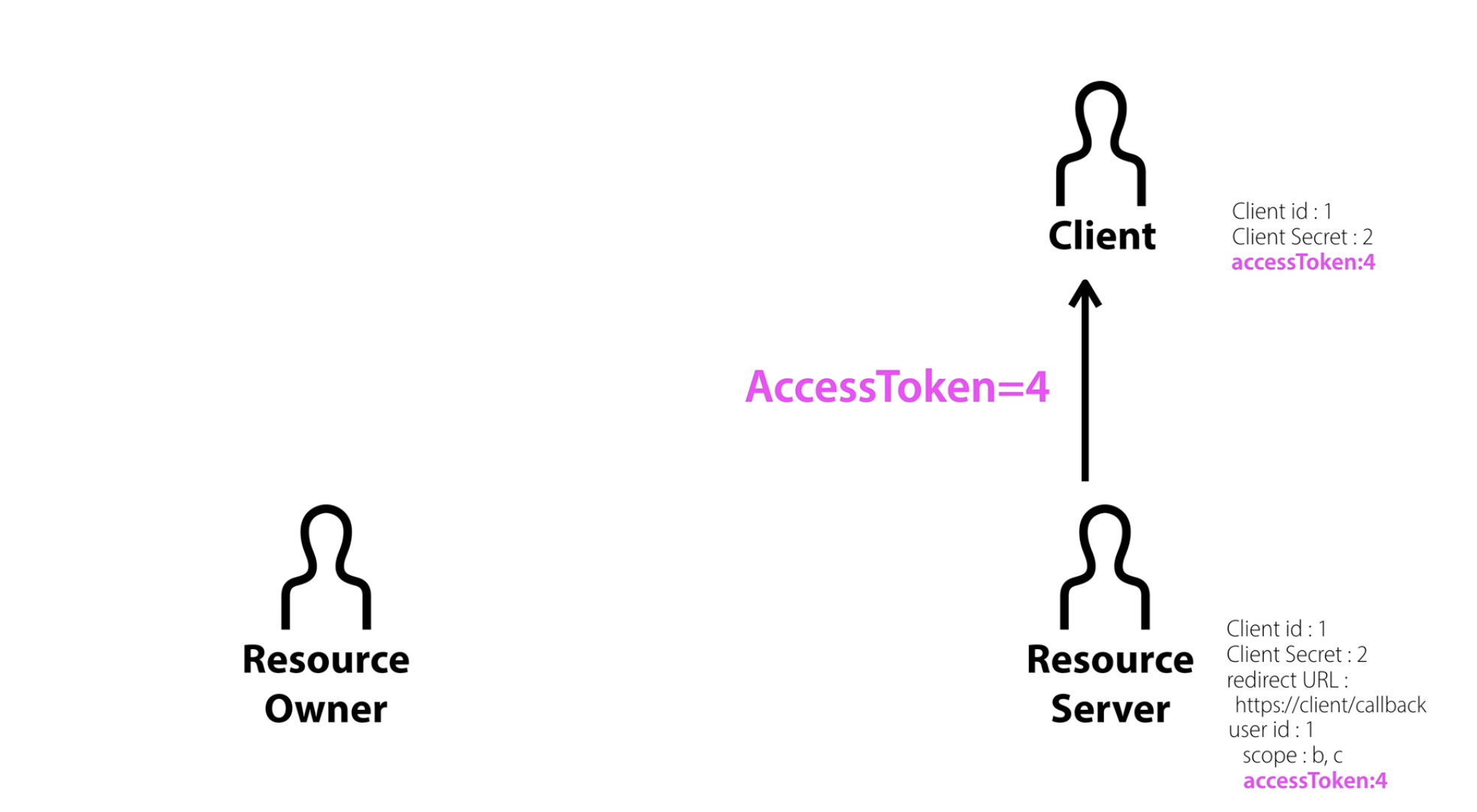 Access Token이 발급되면 Client와 Resource Server 모두 이 토큰을 공유하게 된다. 이제 Client는 이 토큰으로 Resource Owner의 리소스에 접근할 수 있다.