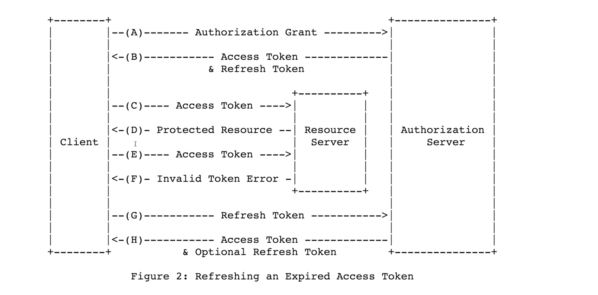 - (G) Client가 Refresh Token으로 새 토큰 요청
