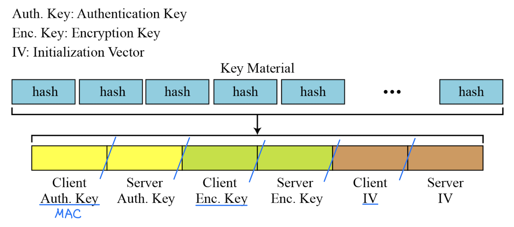 - master secret을 해싱하여 생성