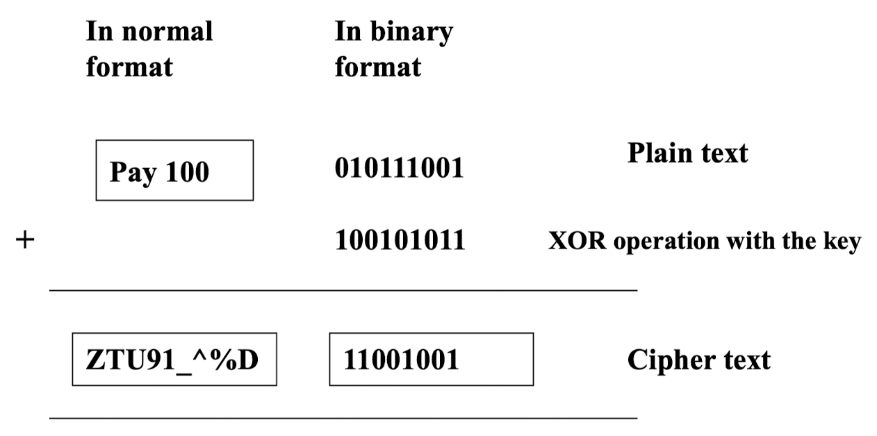 메시지가 비트 스트림으로 처리되어 블록 암호의 출력에 추가된다.