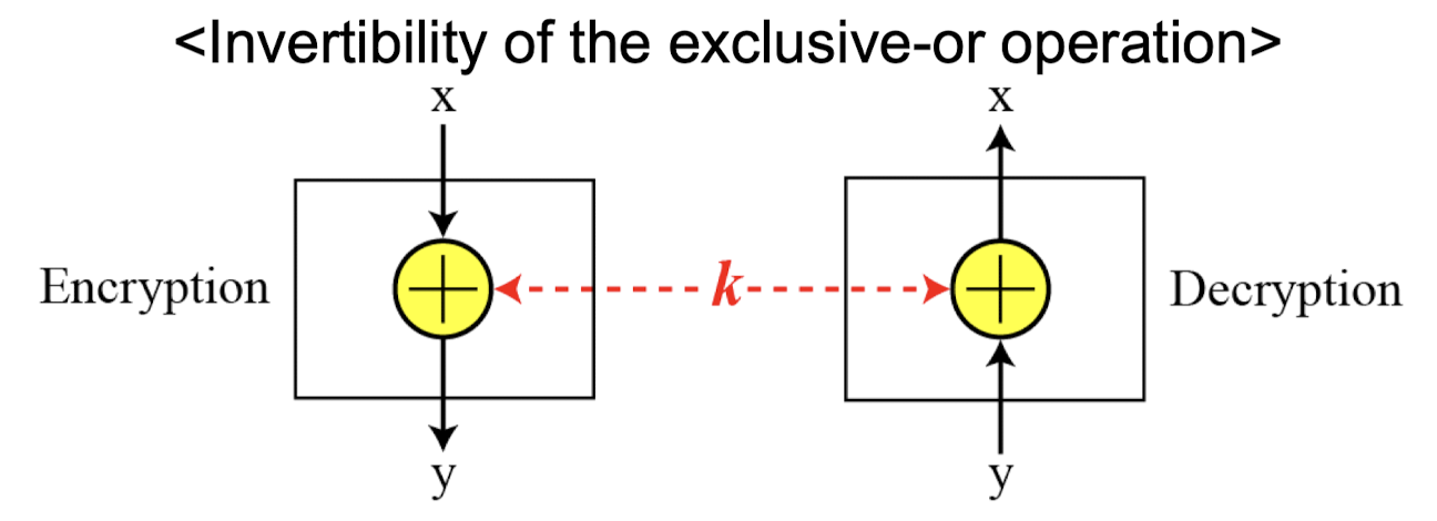 XOR(Exclusive-OR) 연산은 가역적이다. 두 번 적용하면 원래 값이 복원되므로, 대부분의 블록 암호에서 중요한 구성요소로 사용된다.