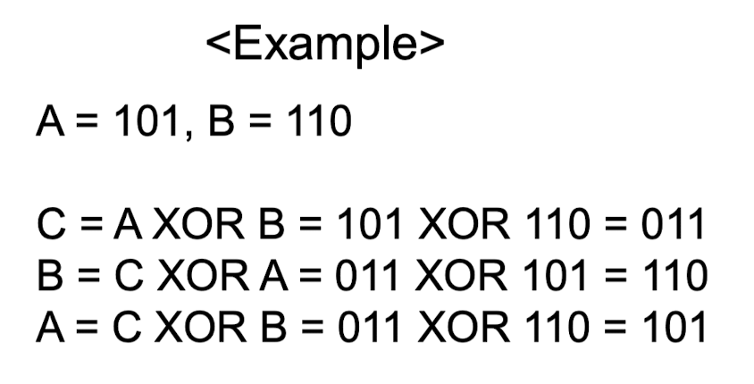 - 자기 역원(Self-invertible): XOR