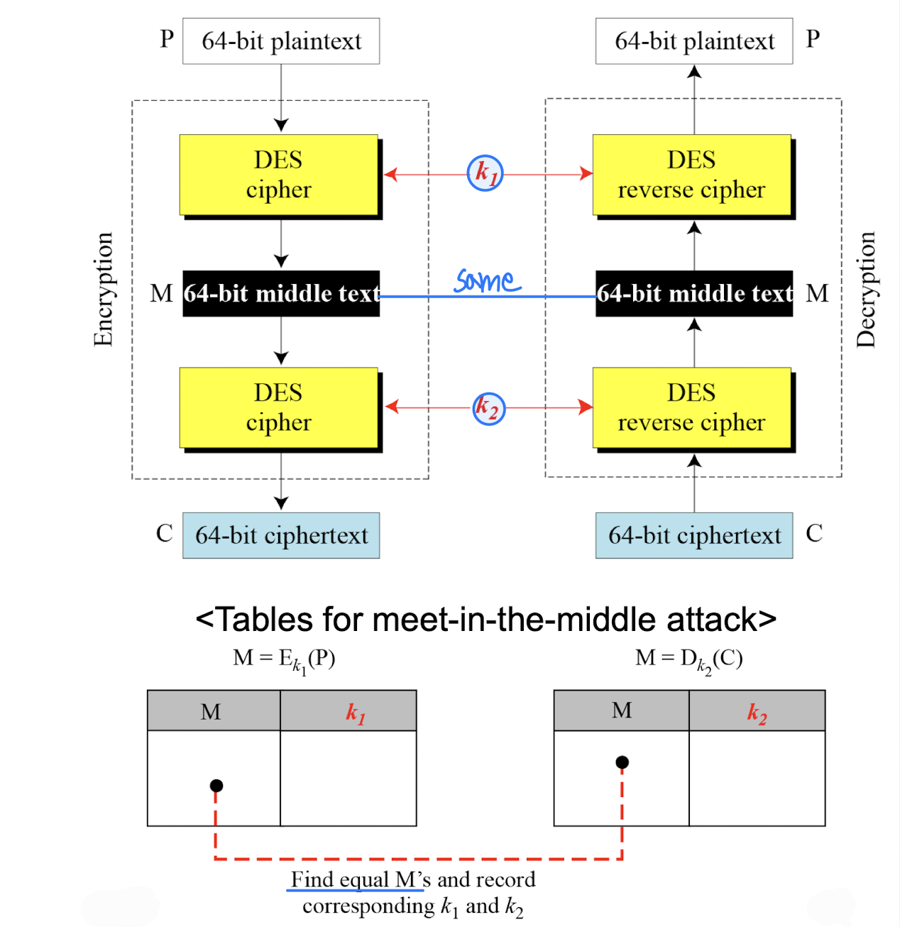 - Eve는 평문에도 정확히 10개의 1이 있다는 것을 안다. 1이 정확히 10개인 64비트 블록만 시도하면 된다.