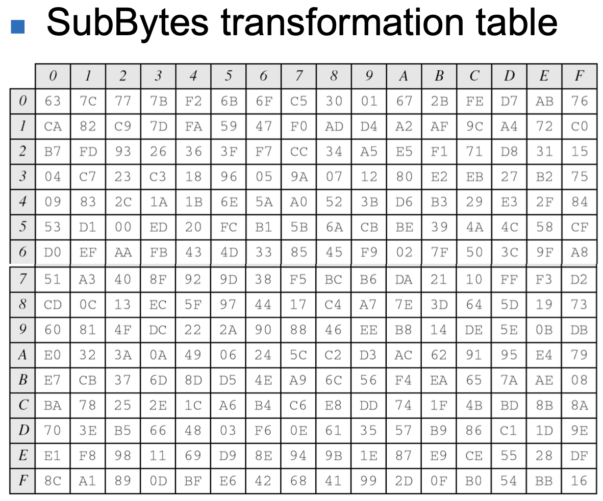 S-Box는 소형 대체 암호로 볼 수 있다. m x n 대체 유닛으로, m과 n이 반드시 같을 필요는 없다.