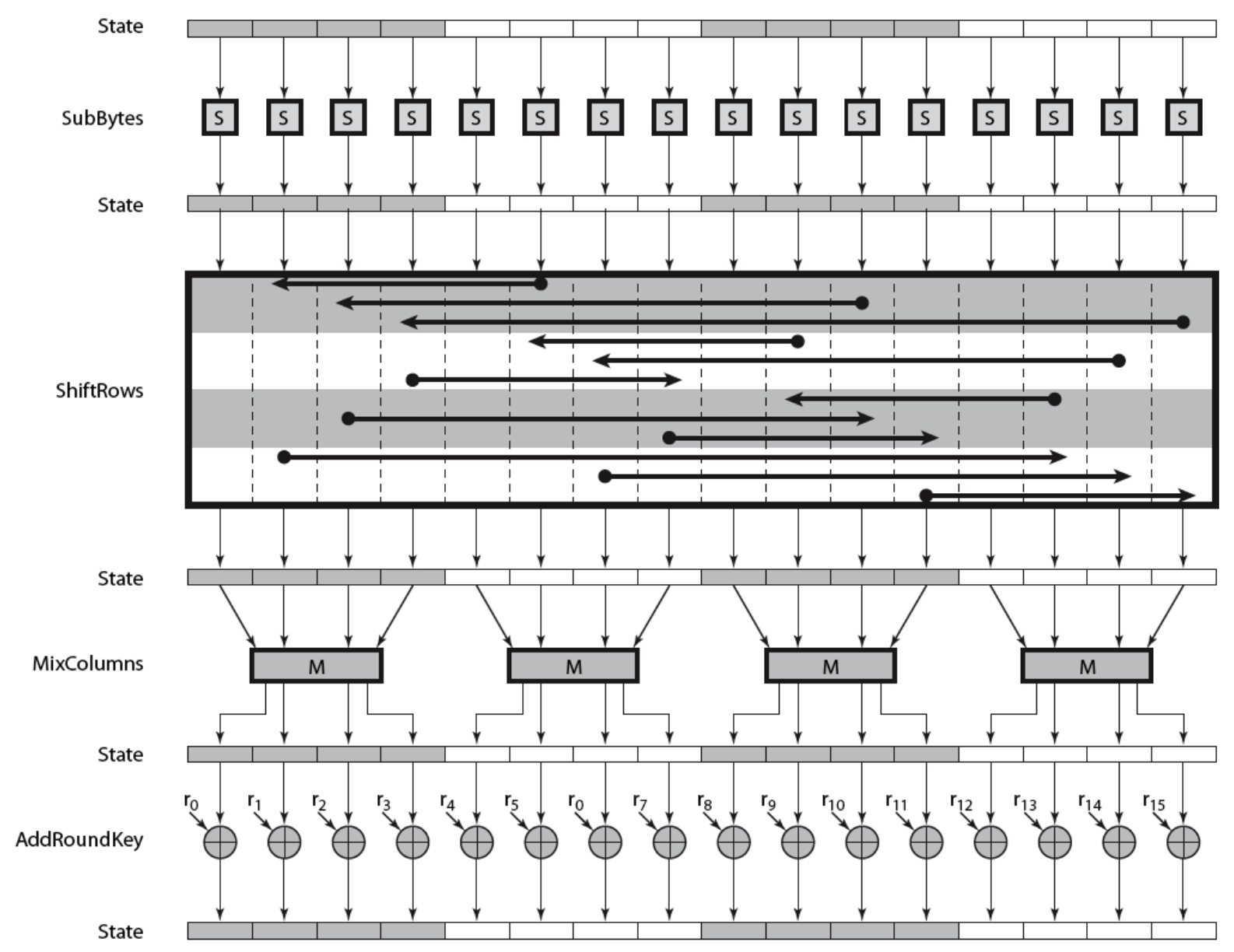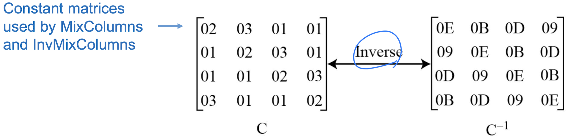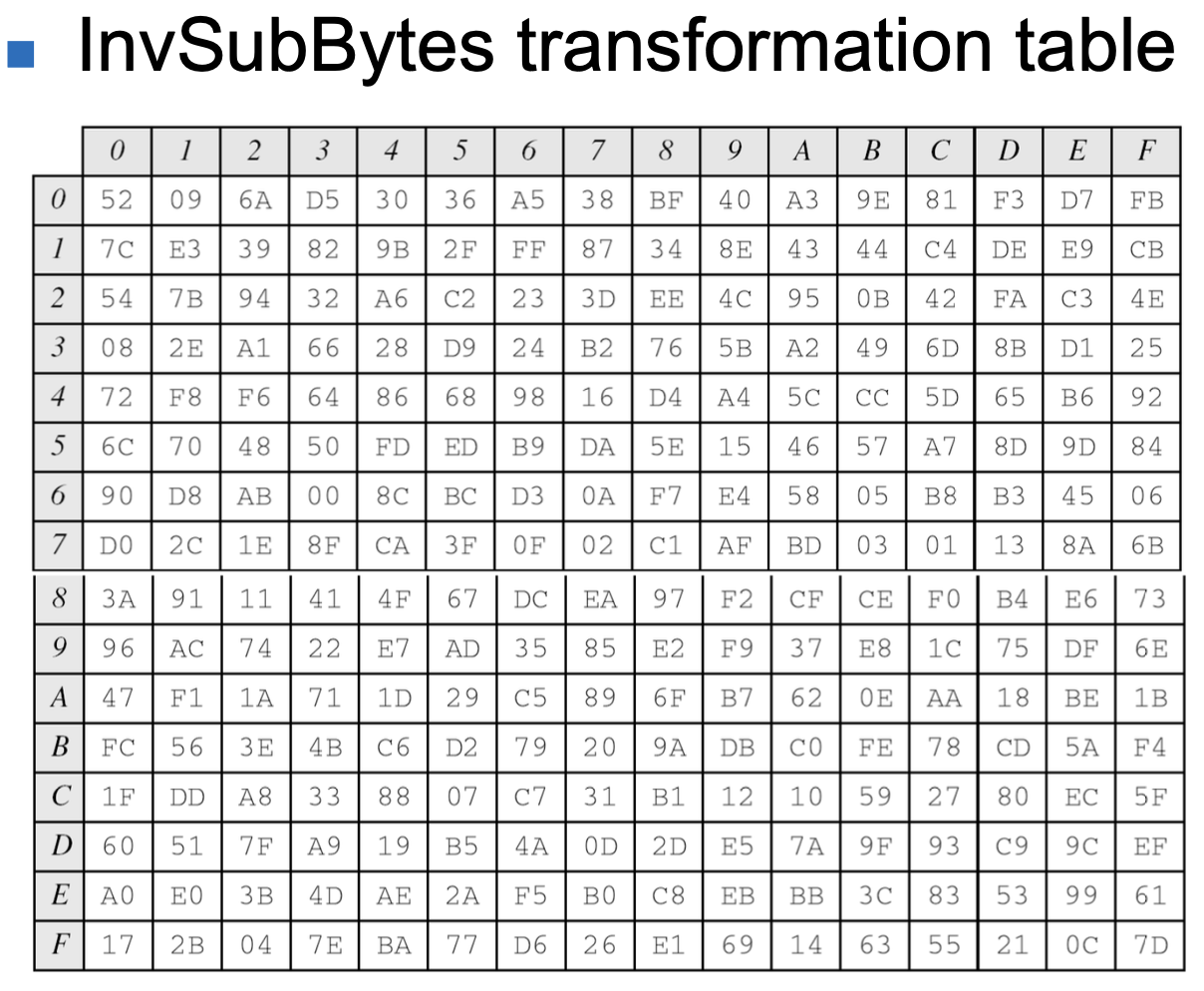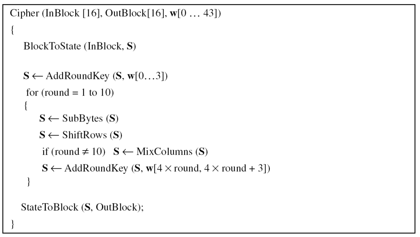 표준에서 암호화 알고리즘은 cipher, 복호화 알고리즘은 inverse cipher라 한다.
