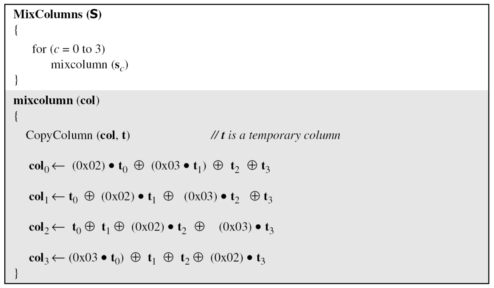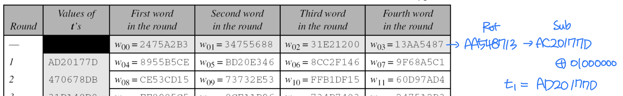 - i mod 4 = 0이지만 i mod 8 ≠ 0이면, wᵢ = SubWord(wᵢ₋₁) + wᵢ₋₈