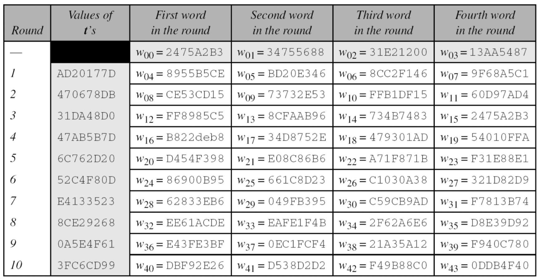 - 암호키가 처음 6개 워드(w₀ ~ w₅) 생성