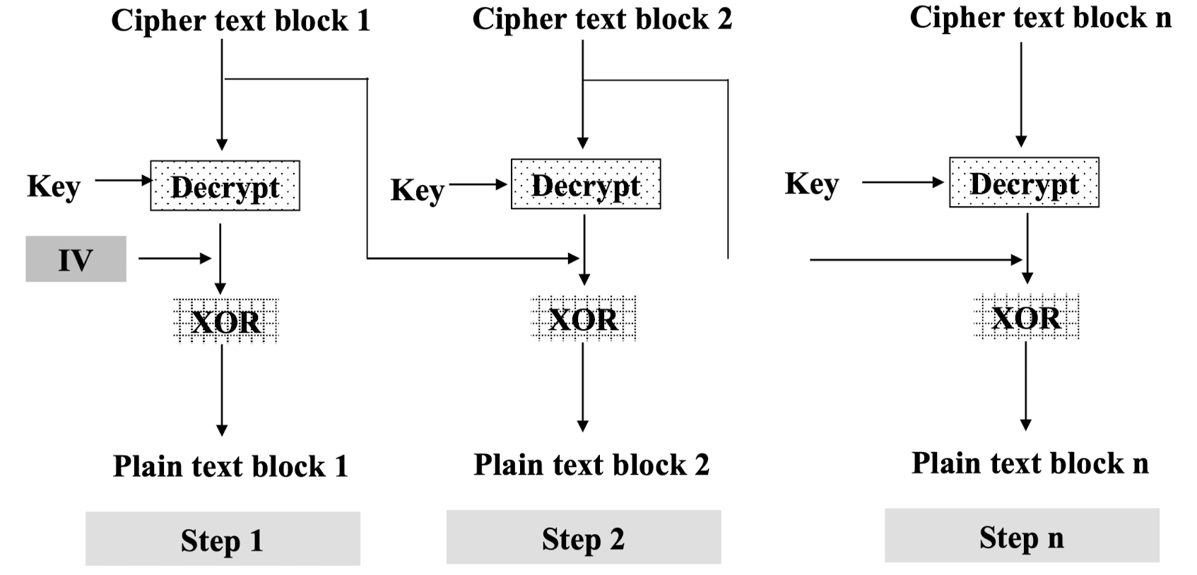 - CBC (Cipher Block Chaining)