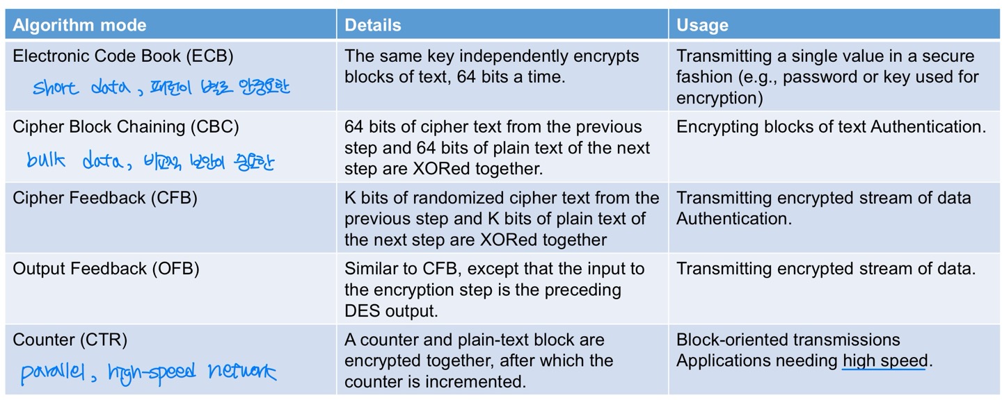 - DES: 64비트 블록